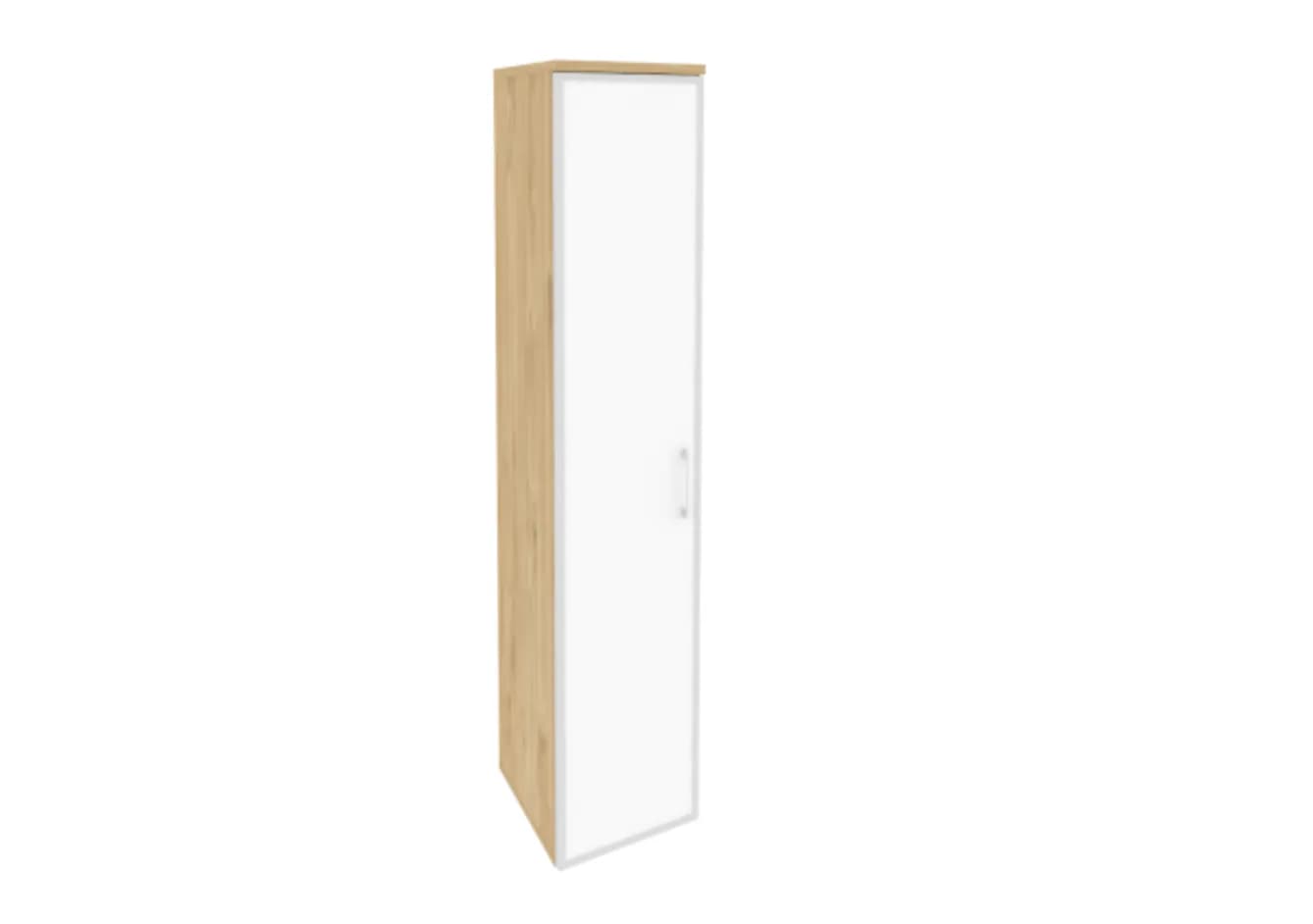 Шкаф высокий узкий левый/правый (1 высокий фасад стекло лакобель в раме) тиквуд светлый