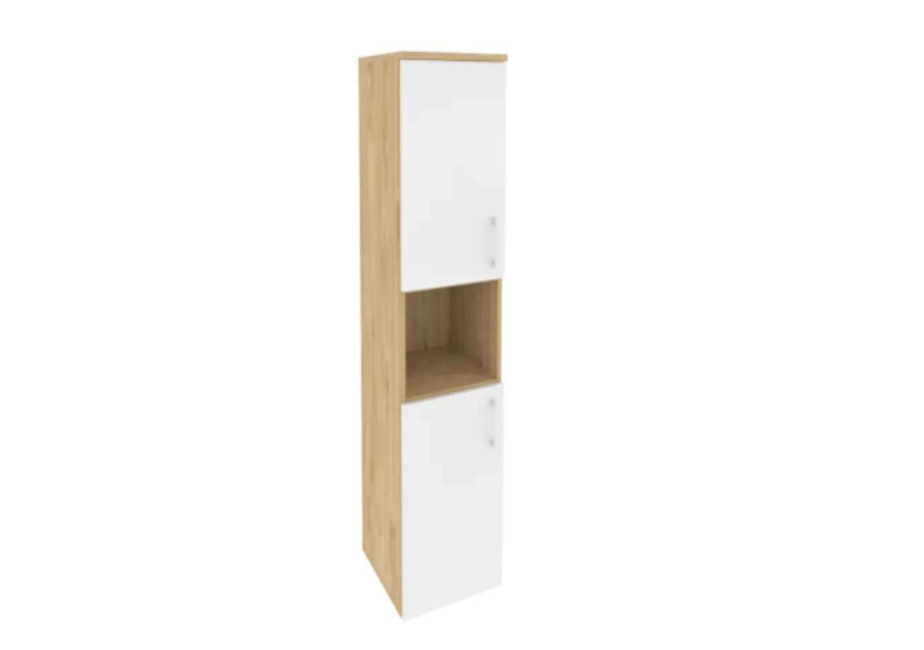 Шкаф высокий узкий левый/правый (2 низких фасада ЛДСП белый бриллиант) тиквуд светлый