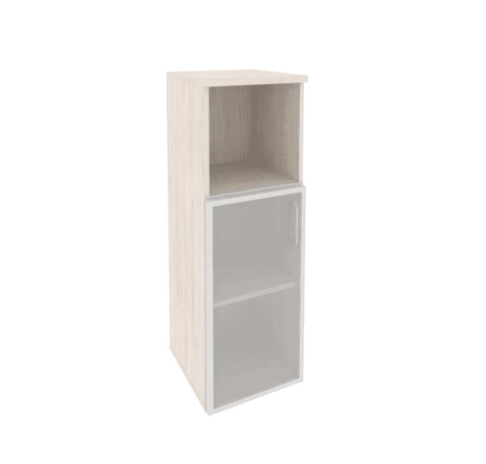 Шкаф средний узкий левый (1 низкий фасад стекло в раме), денвер светлый