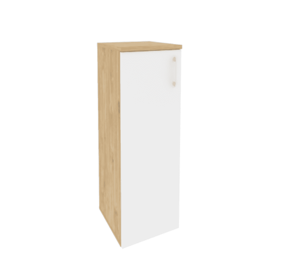 Шкаф средний узкий левый (1 средний фасад ЛДСП белый бриллиант), тиквуд светлый