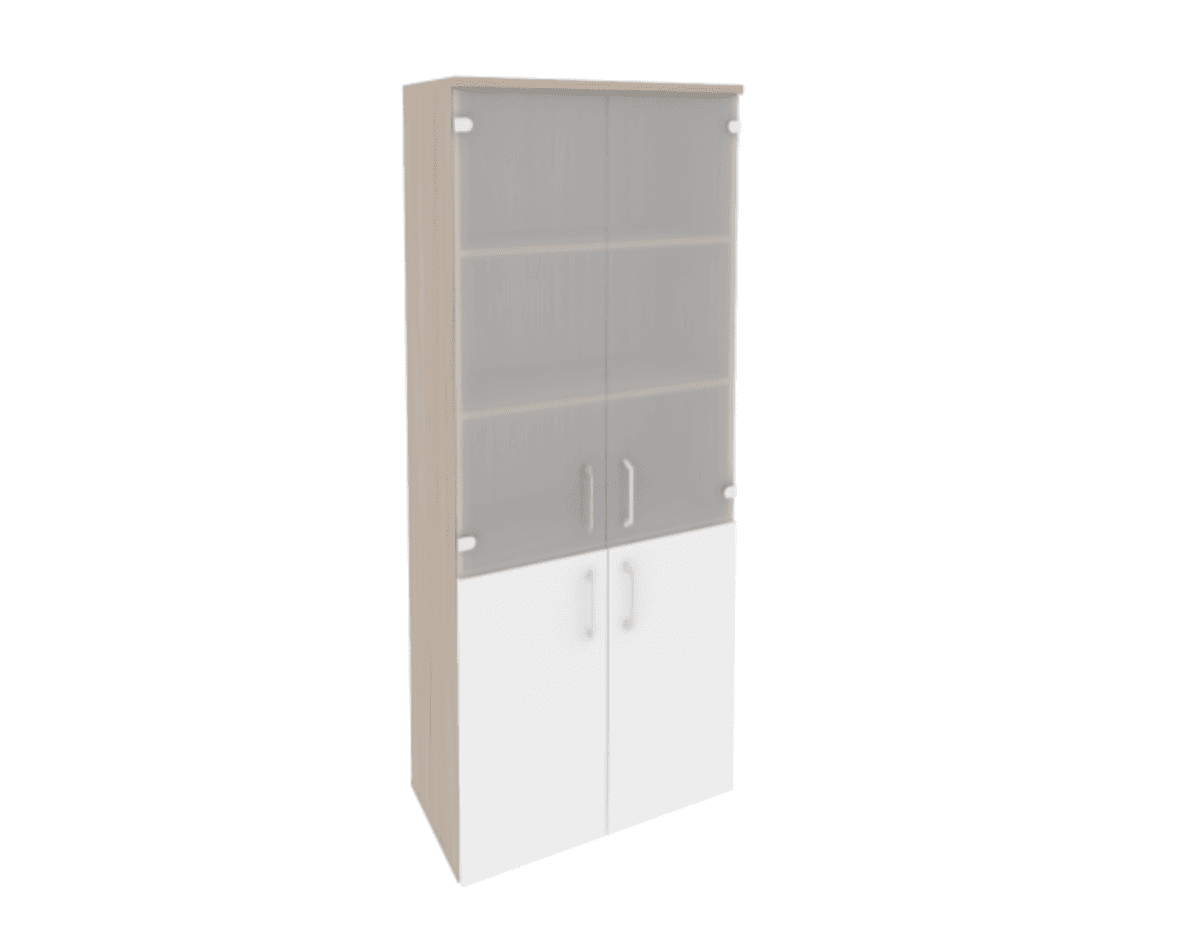Шкаф высокий широкий (2 низких фасада ЛДСП + 2 средних фасада стекло) фасад белый бриллиант, дуб аттик