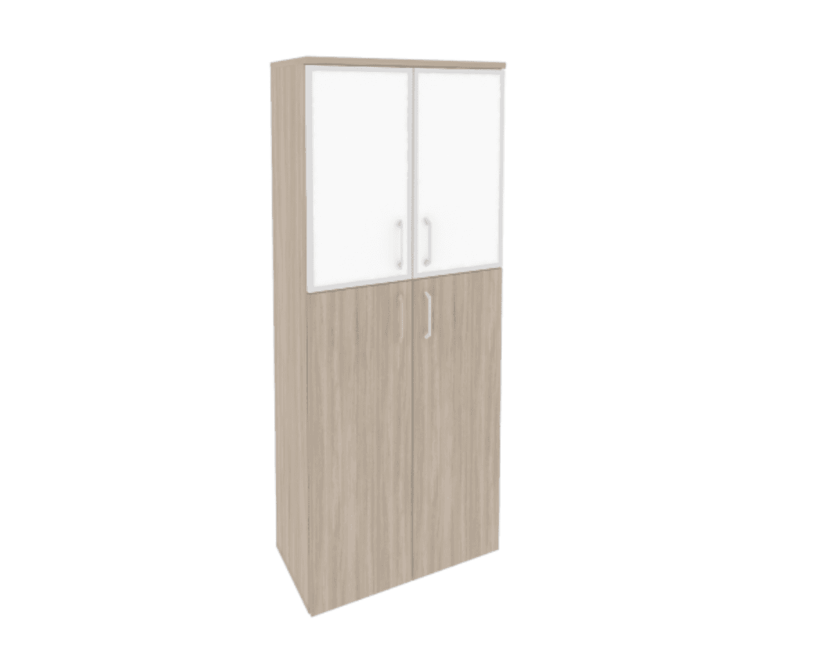 Шкаф высокий широкий (2 средних фасада ЛДСП + 2 низких фасада стекло лакобель в раме), дуб аттик