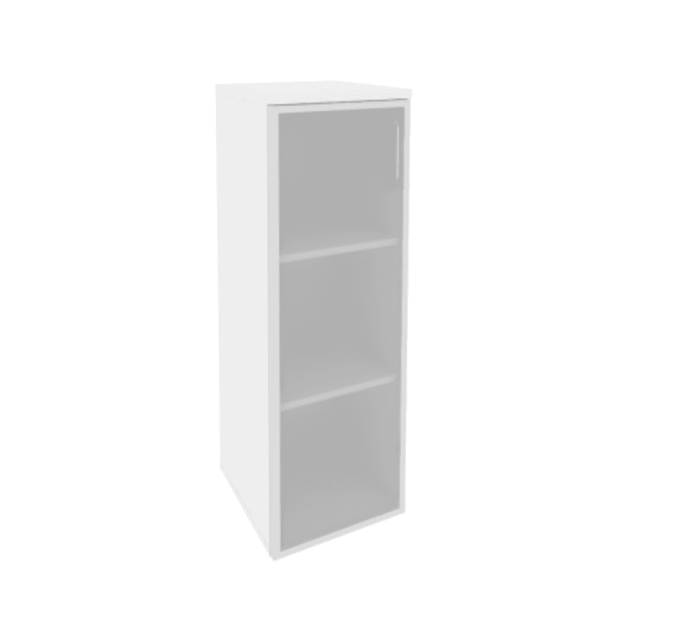 Шкаф средний узкий левый (1 средний фасад стекло в раме), белый бриллиант