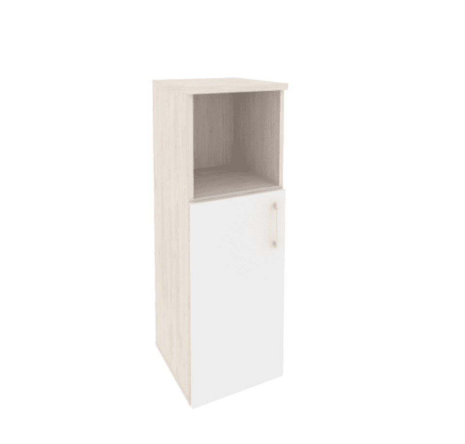 Шкаф средний узкий левый/правый (1 низкий фасад ЛДСП белый бриллиант), денвер светлый
