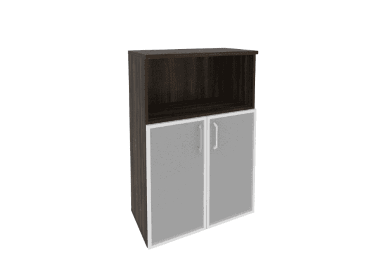 Шкаф средний широкий (2 низких фасада стекло в раме), дуб мали