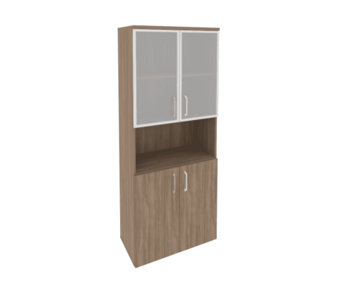 Шкаф высокий широкий (2 низких фасада ЛДСП + 2 низких фасада стекло в раме), дуб аризона