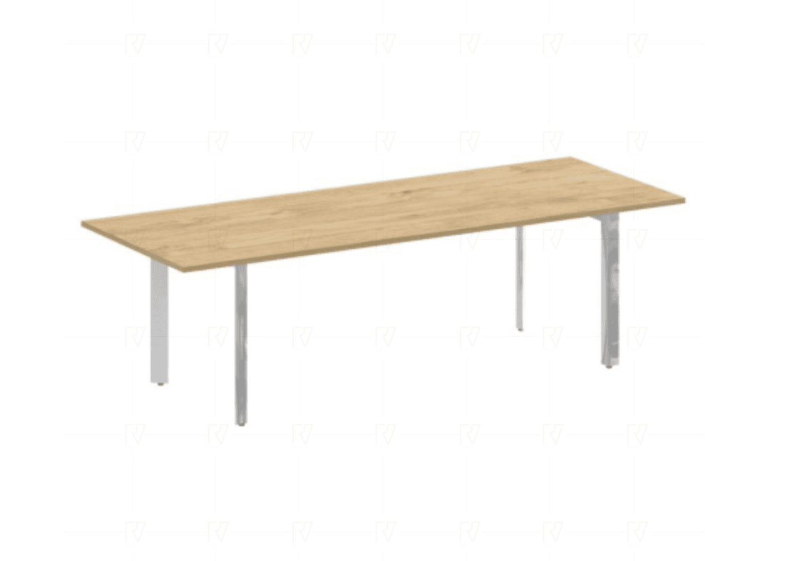 Стол переговорный на П-образном м/к (нерж.сталь) 2580, тиквуд светлый