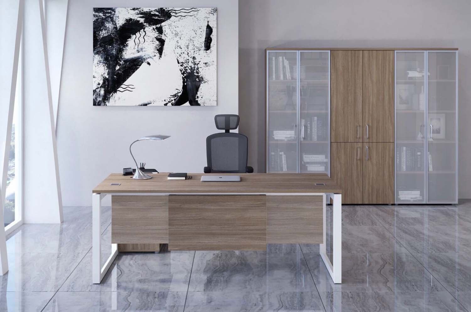 Стол руководителя на О-образном м/к (антрацит)
