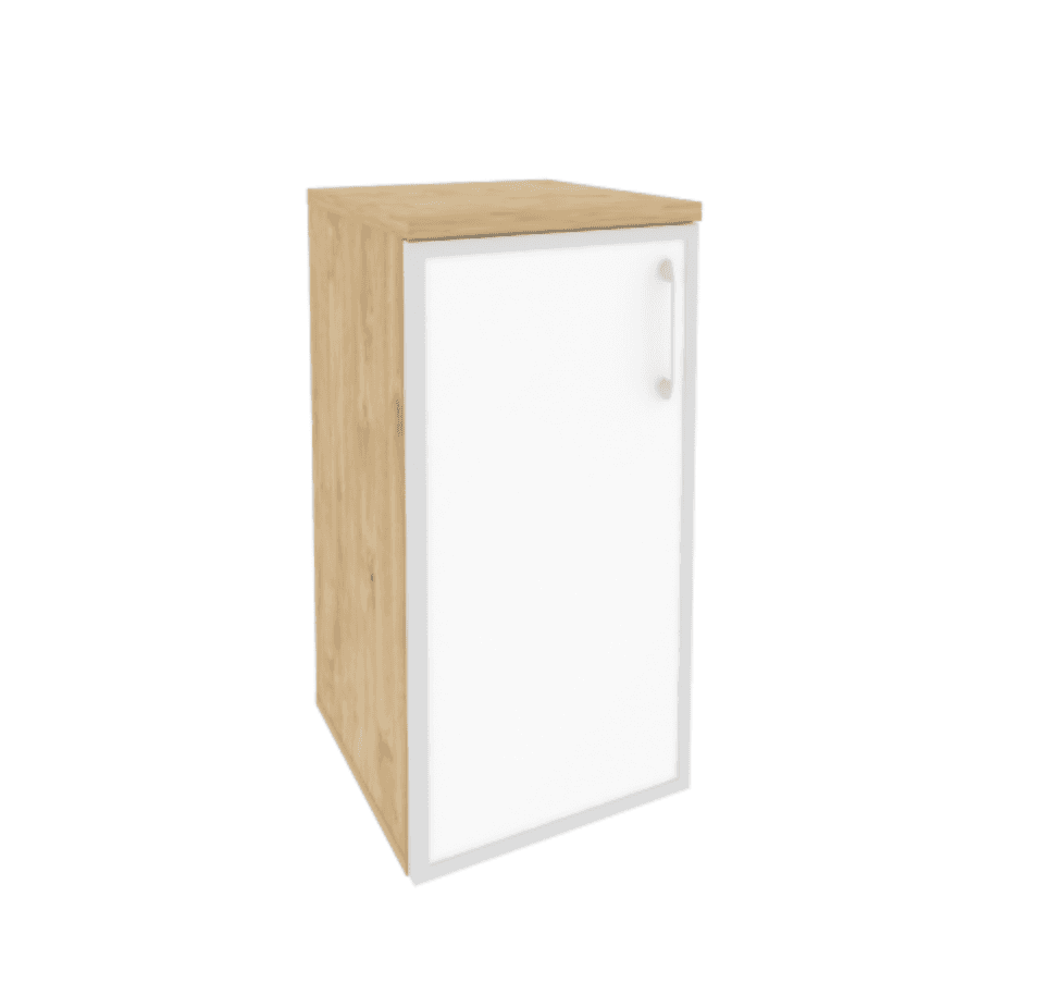 Шкаф низкий узкий левый (1 низкий фасад стекло лакобель в раме), тиквуд светлый