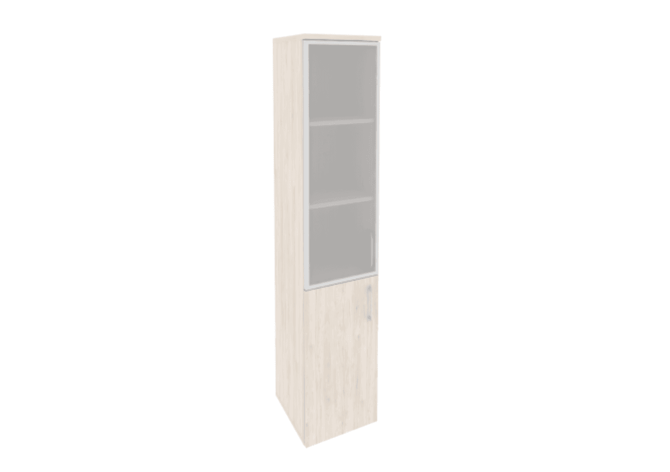 Шкаф высокий узкий левый/правый (1 низкий фасад ЛДСП + 1 средний фасад стекло в раме), денвер светлый