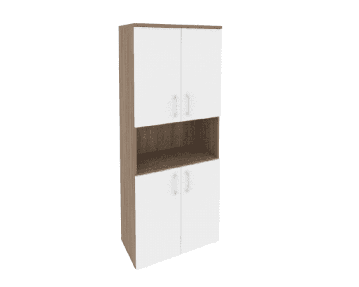 Шкаф высокий широкий (4 низких фасада ЛДСП) фасад белый бриллиант, дуб аризона
