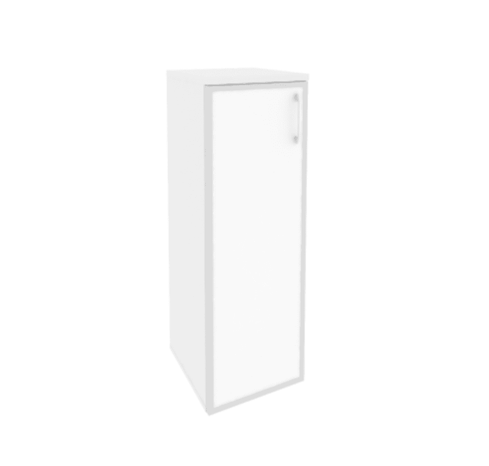 Шкаф средний узкий левый (1 средний фасад стекло лакобель в раме), белый бриллиант