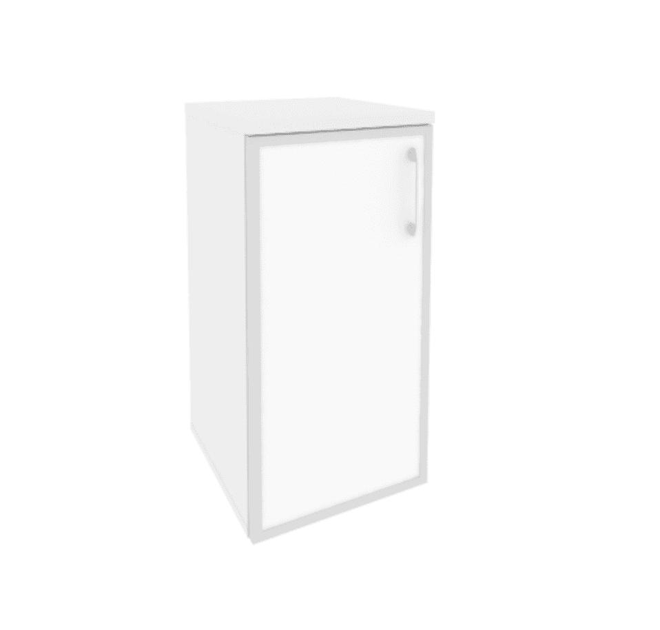 Шкаф низкий узкий левый (1 низкий фасад стекло лакобель в раме), белый бриллиант