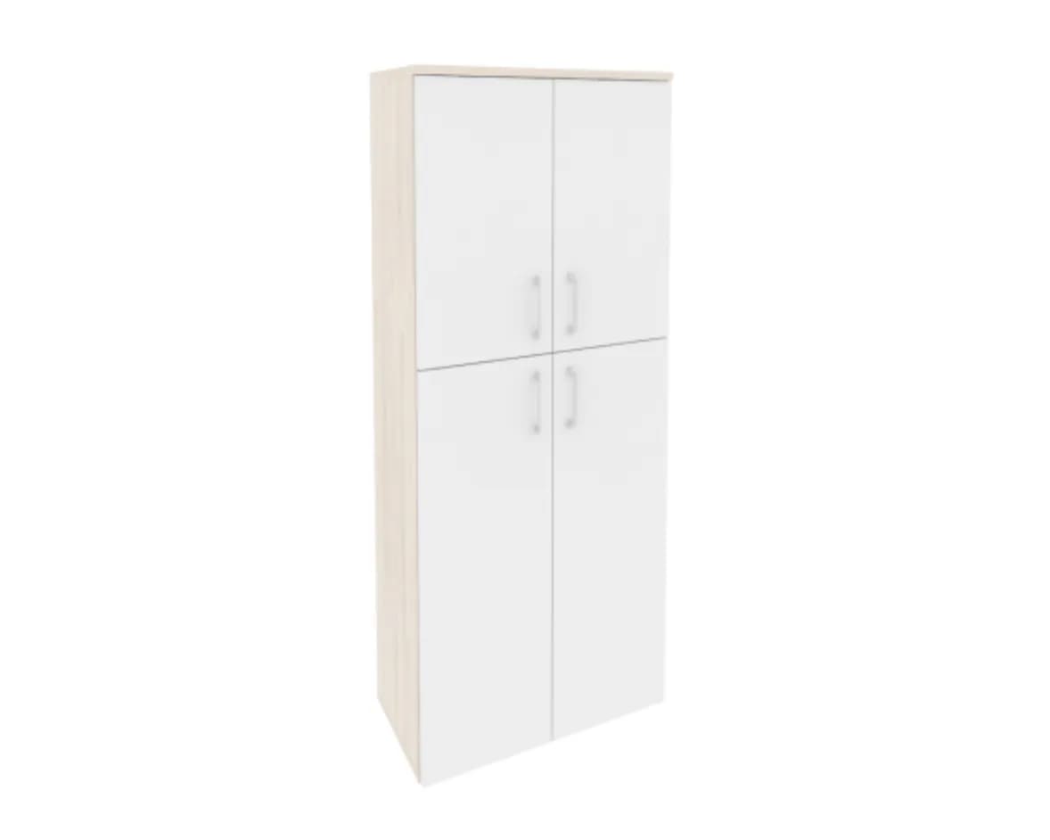 Шкаф высокий широкий (2 средних фасада ЛДСП + 2 низких фасада ЛДСП) фасад белый бриллиант денвер светлый