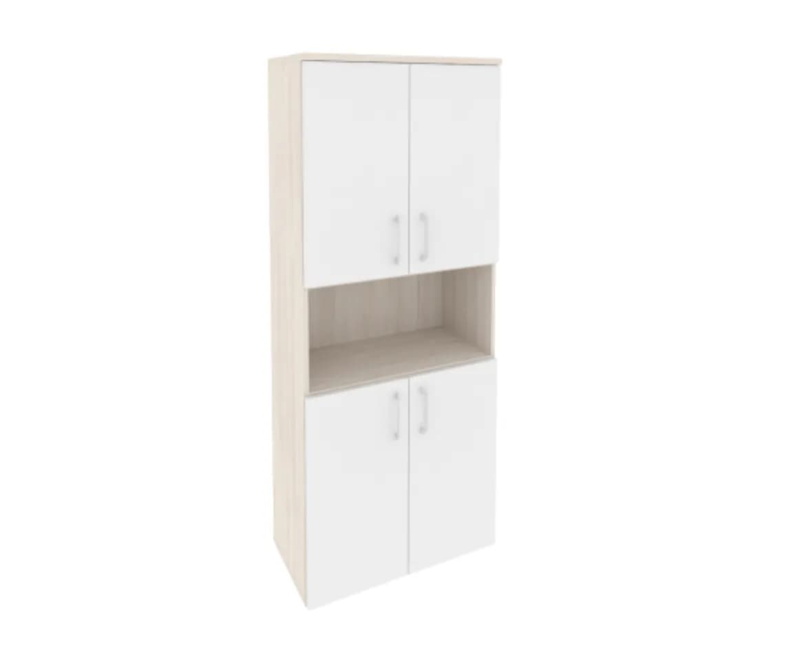 Шкаф высокий широкий (4 низких фасада ЛДСП) фасад белый бриллиант денвер светлый