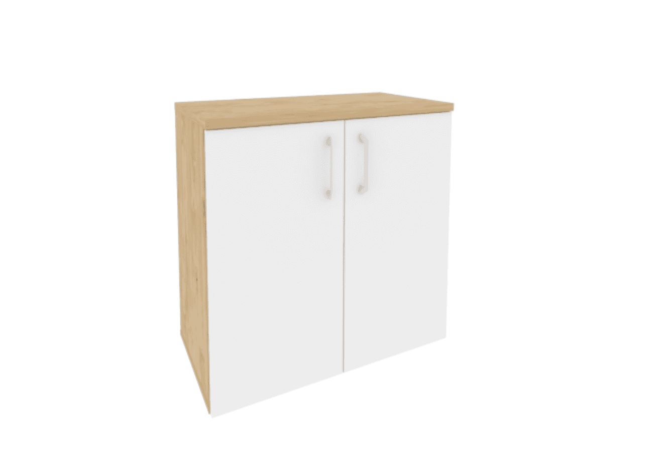 Шкаф низкий широкий (2 низких фасада ЛДСП) фасад белый бриллиант, тиквуд светлый