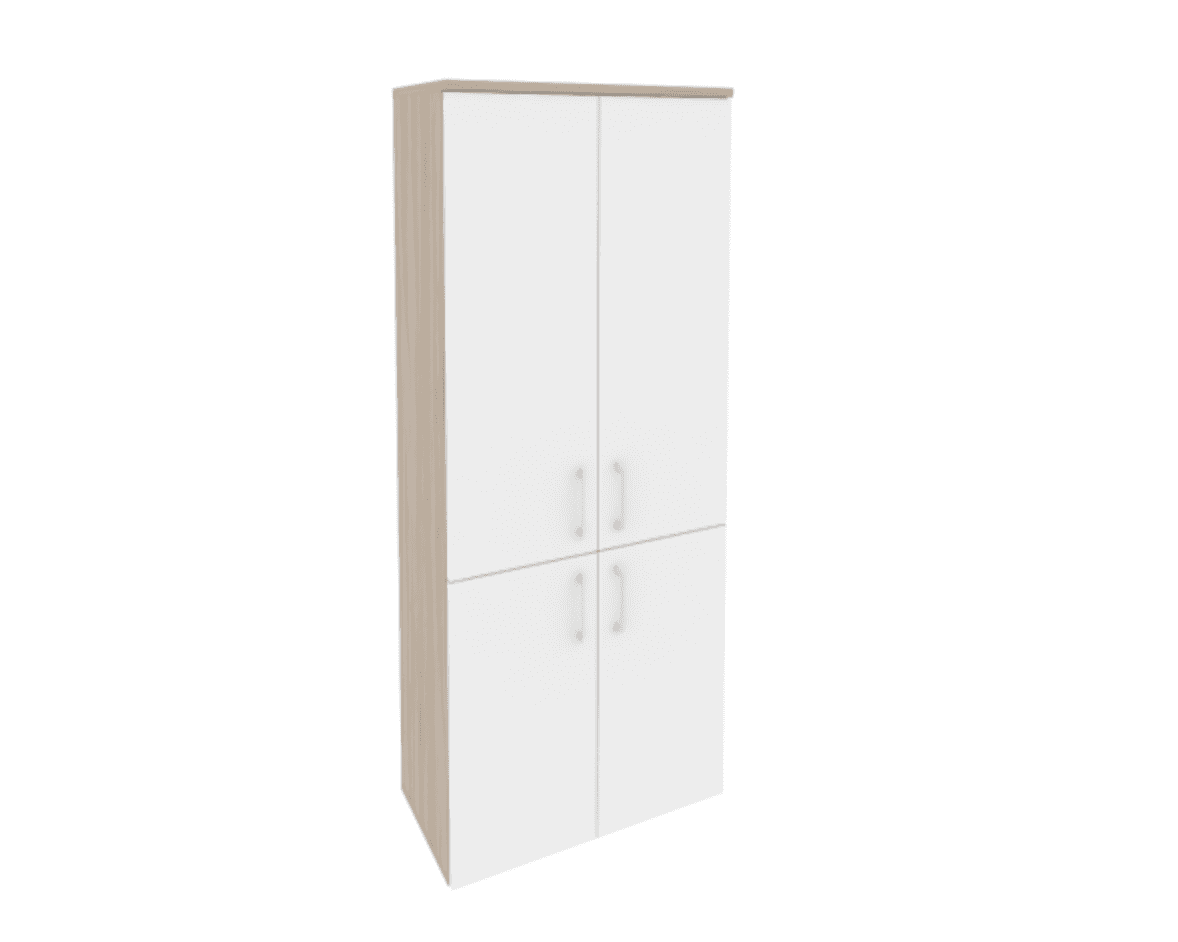 Шкаф высокий широкий (2 низких фасада ЛДСП + 2 средних фасада ЛДСП) фасад белый бриллиант, дуб аттик