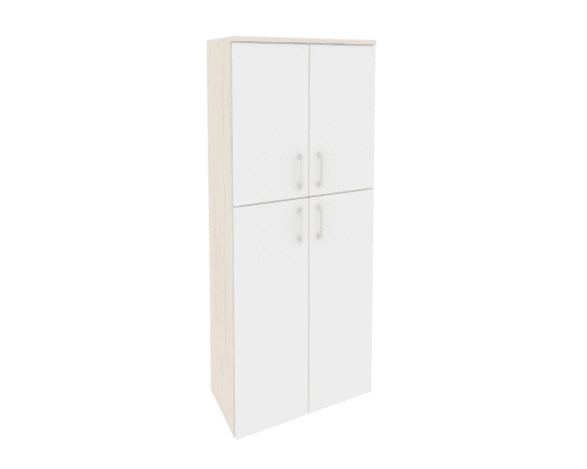 Шкаф высокий широкий (2 средних фасада ЛДСП + 2 низких фасада ЛДСП) фасад белый бриллиант, денвер светлый
