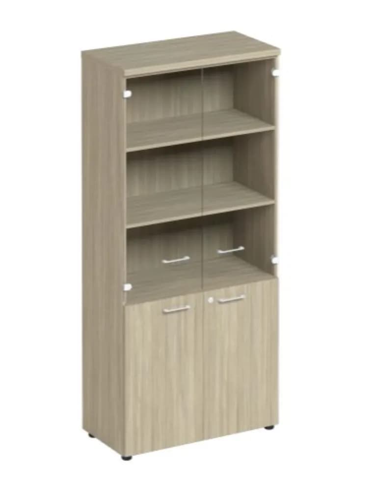 Шкаф для документов со стеклянными прозрачными дверьми дуб скандинавский