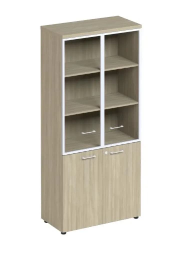 Шкаф для документов со стеклянными прозрачными дверьми в рамке дуб скандинавский