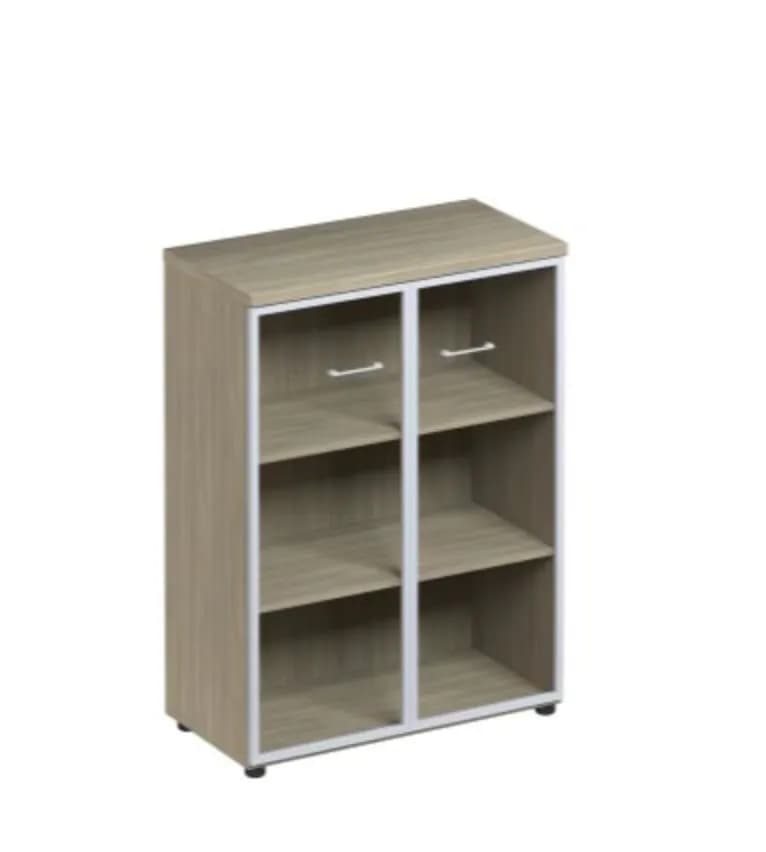 Шкаф для документов средний со стеклянными прозрачными дверьми в рамке дуб скандинавский