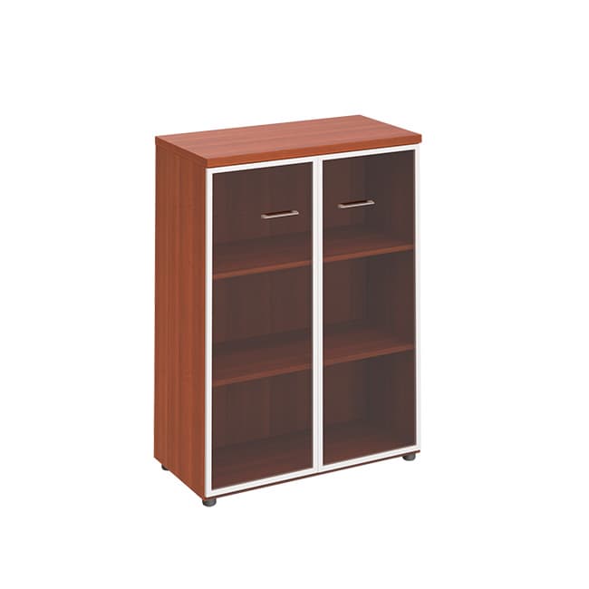 Шкаф для документов средний со стеклянными прозрачными дверьми в рамке, миланский орех