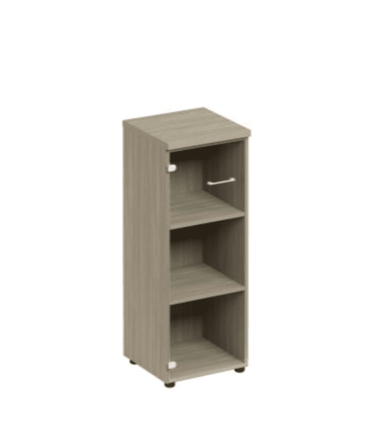 Шкаф для документов средний узкий со стеклянной прозрачной дверью, дуб скандинавский