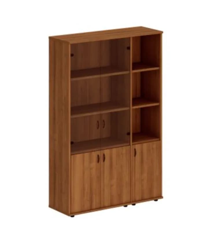 Шкаф комбинированный высокий (стекло + полузакрытый узкий) темный орех