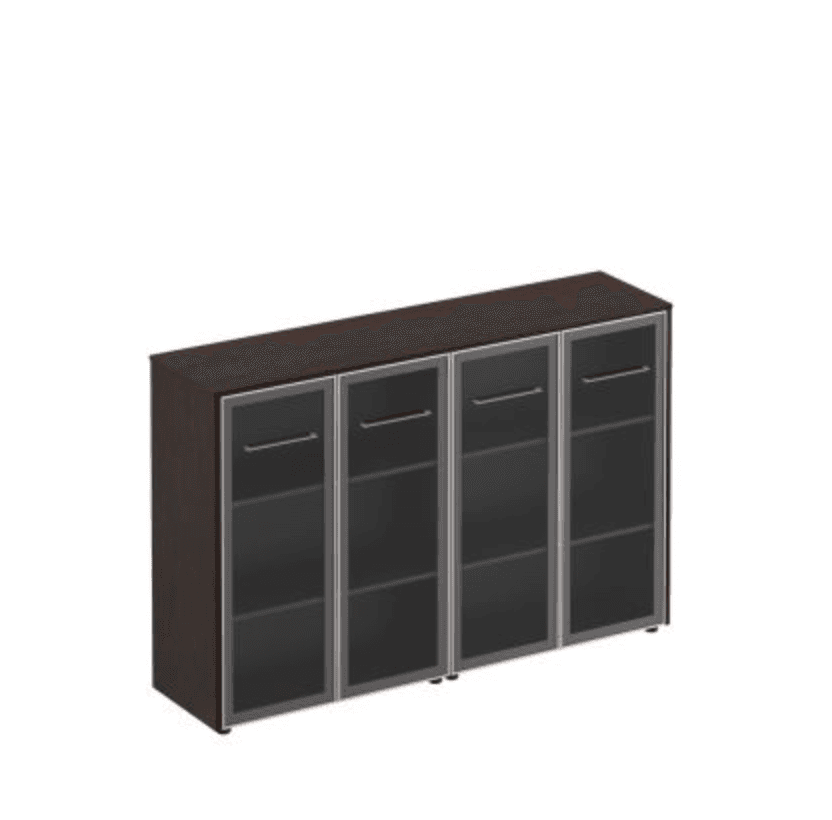 Шкаф для документов со стеклянными дверьми (стенка из 2 шкафов), дуб тёмный
