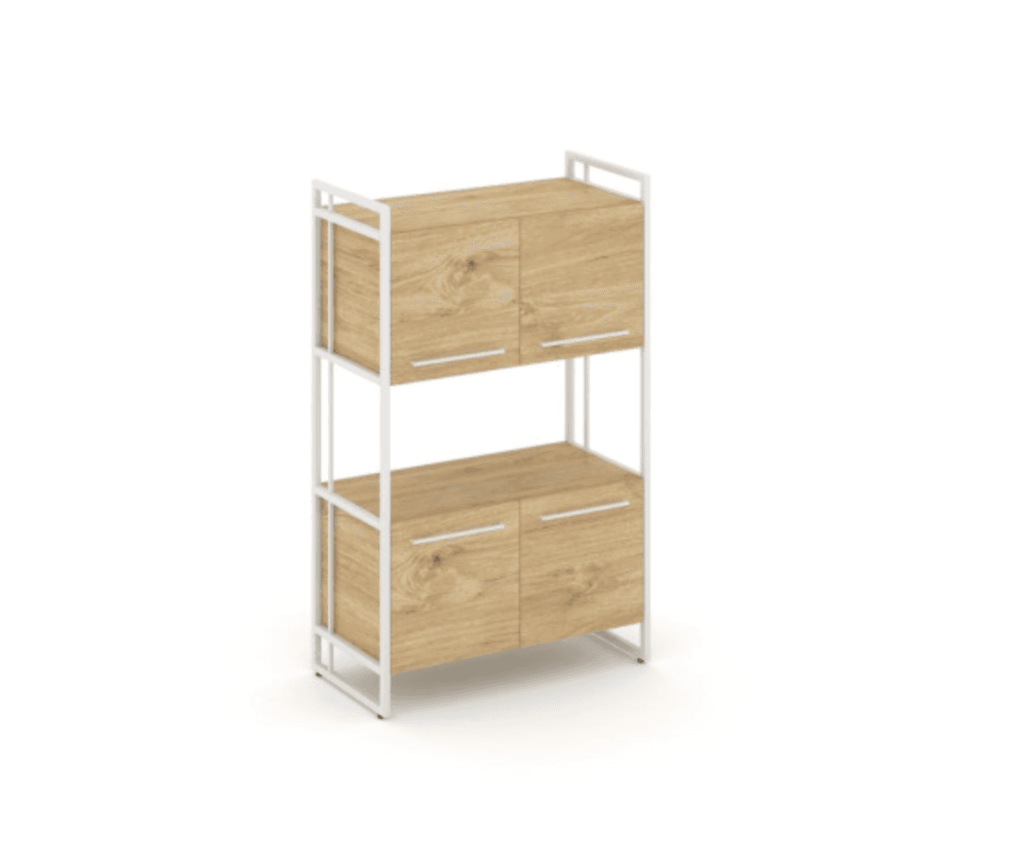 Шкаф средний широкий, 4 двери - металл белый, тиквуд светлый