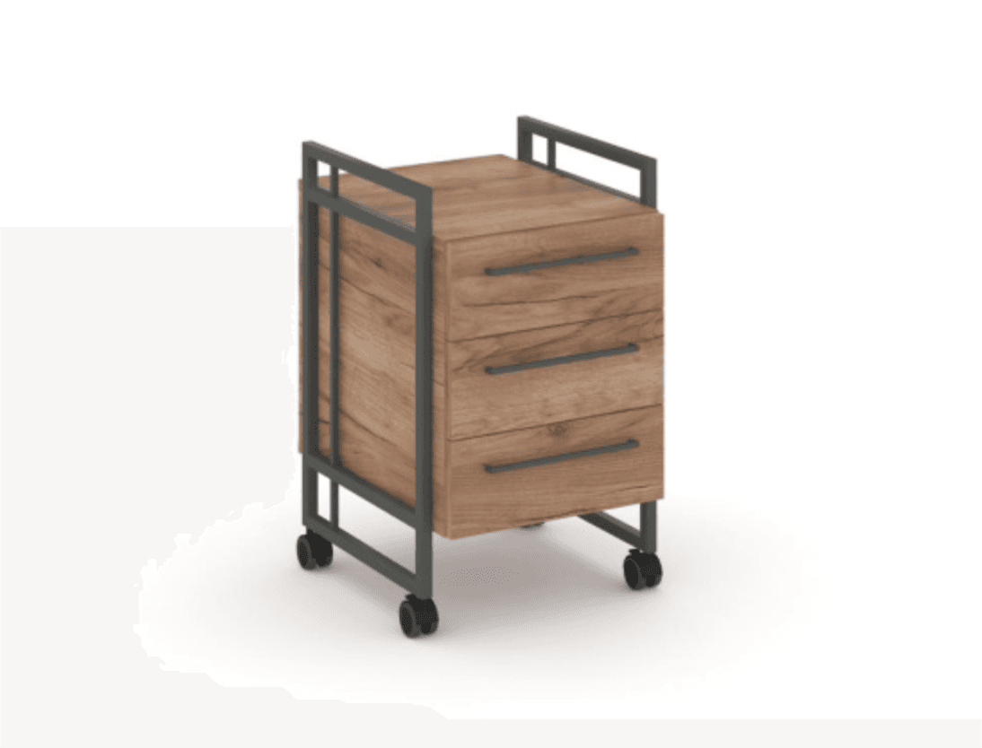 Тумба мобильная, 3 ящика - металл черный/антрацит, дуб табак