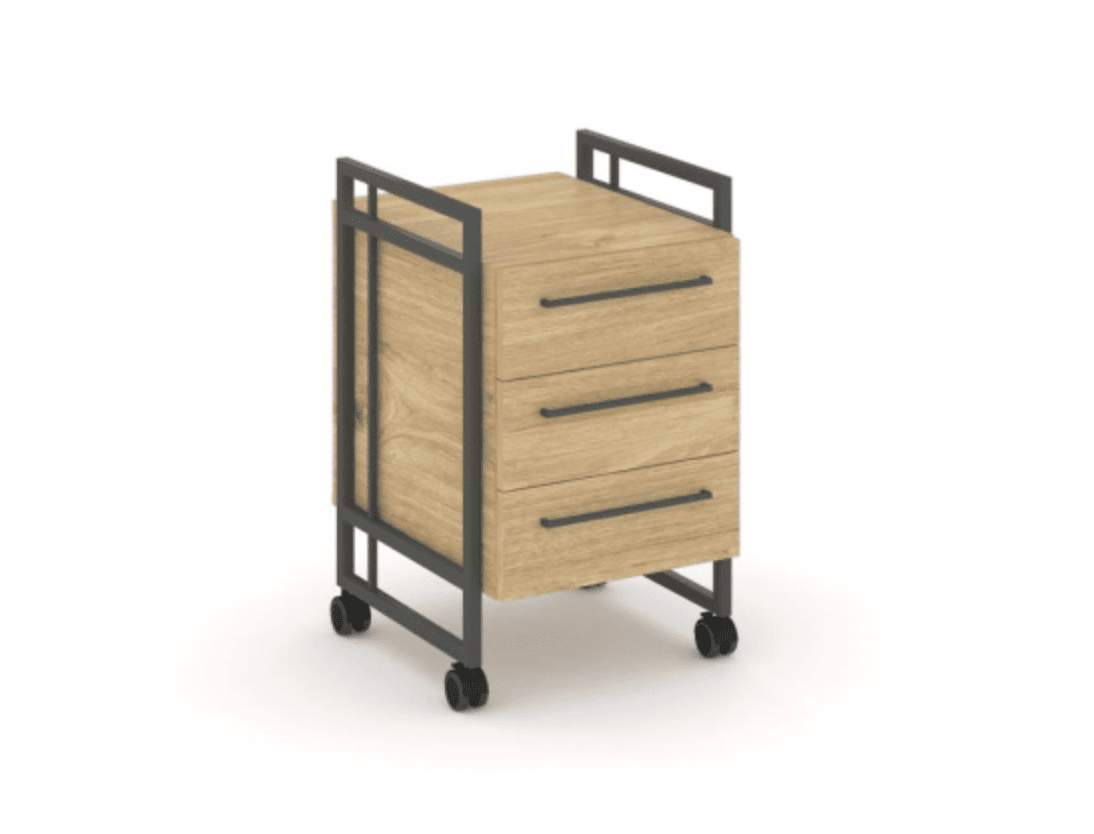 Тумба мобильная, 3 ящика - металл черный/антрацит, тиквуд светлый