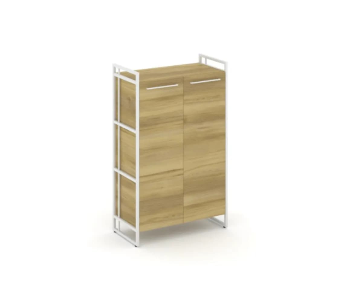 Шкаф средний широкий закрытый - металл белый дуб винченцо