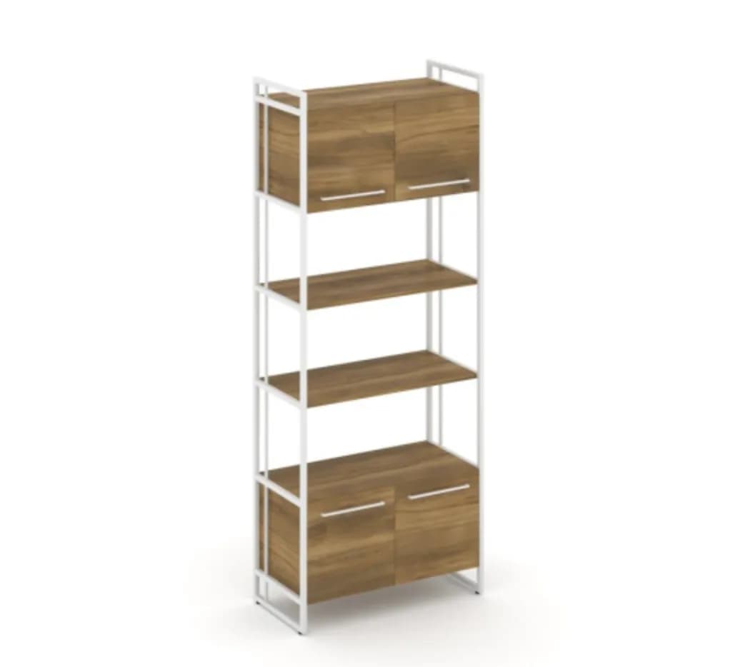 Шкаф высокий широкий 4 низкие двери - металл белый сандал янтарный