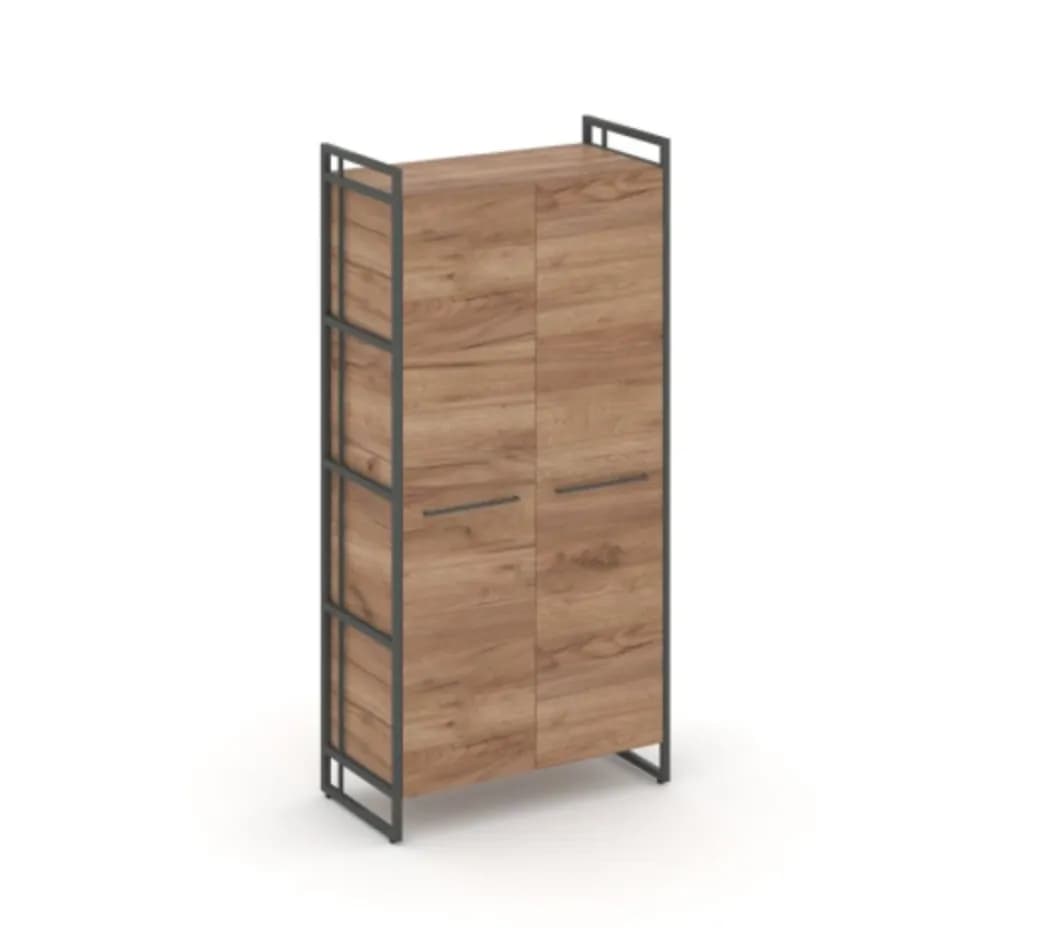 Шкаф высокий широкий закрытый - металл черный/антрацит дуб табак