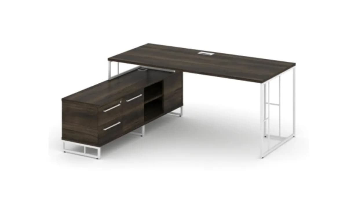 Стол руководителя на опорной тумбе левый/правый 1580 - металл белый дуб мали