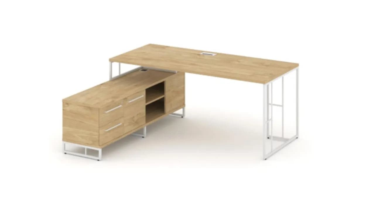 Стол руководителя на опорной тумбе левый/правый 1580 - металл белый тиквуд светлый