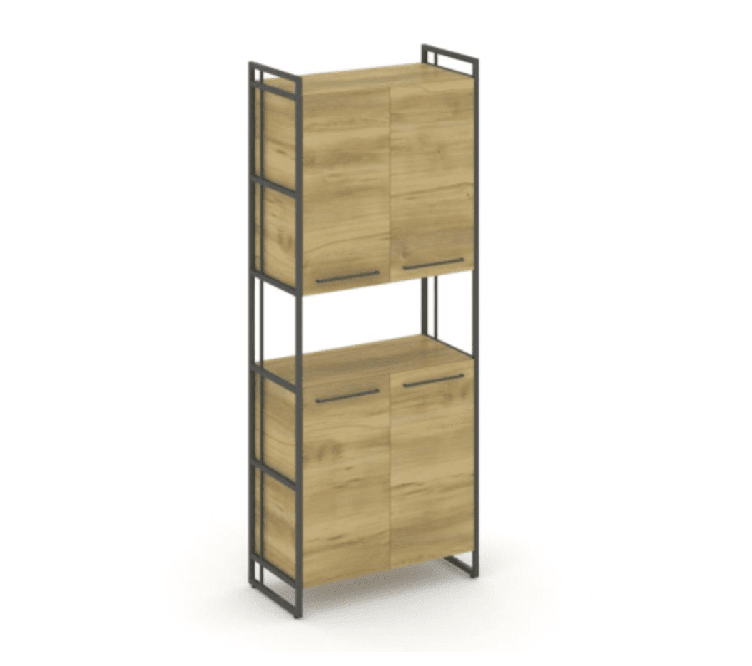 Шкаф высокий широкий 4 средние двери - металл черный/антрацит, дуб винченцо