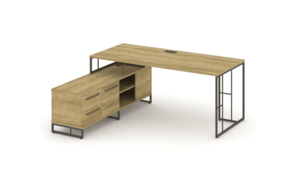 Стол руководителя на опорной тумбе левый/правый 1780 - металл черный/антрацит, дуб винченцо