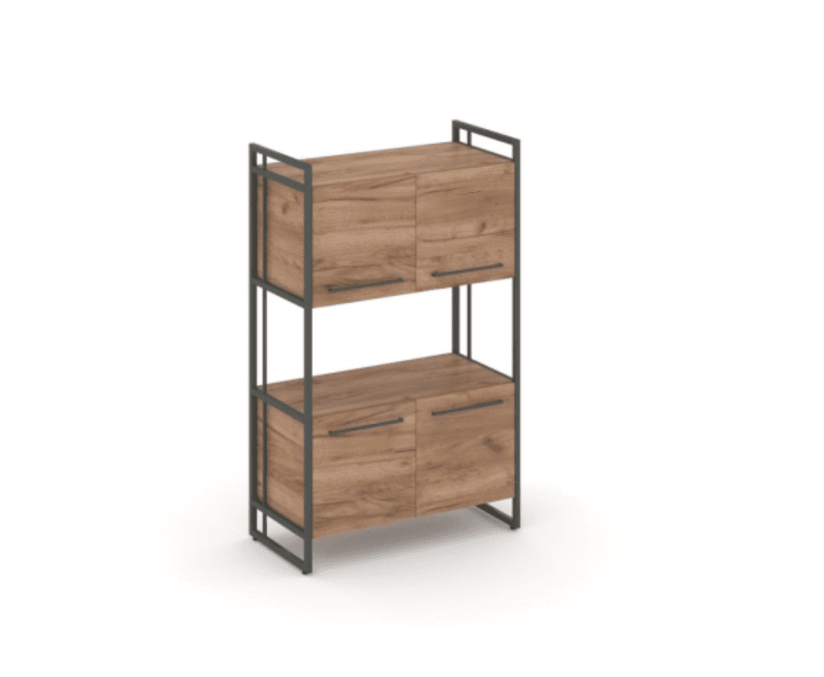 Шкаф средний широкий, 4 двери - металл черный/антрацит, дуб табак
