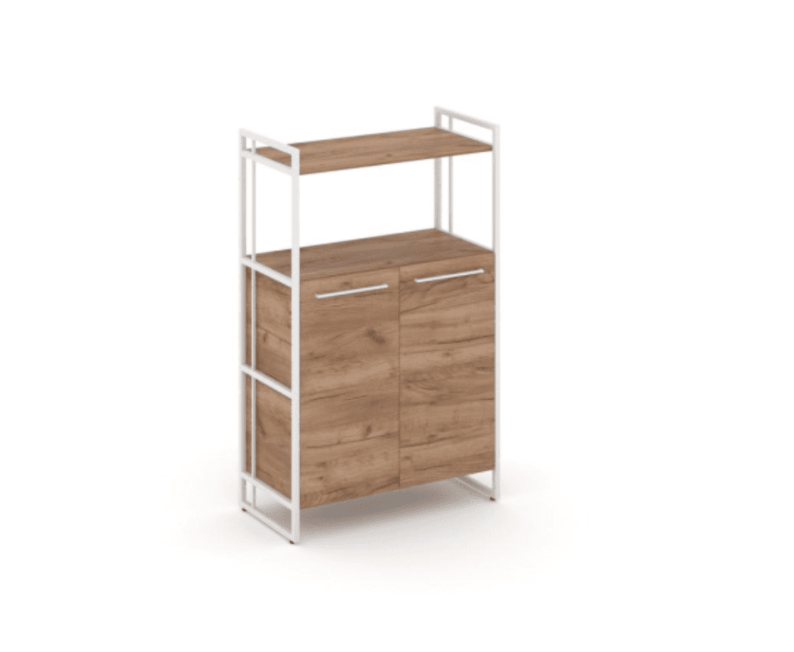 Шкаф средний широкий - металл белый, дуб табак