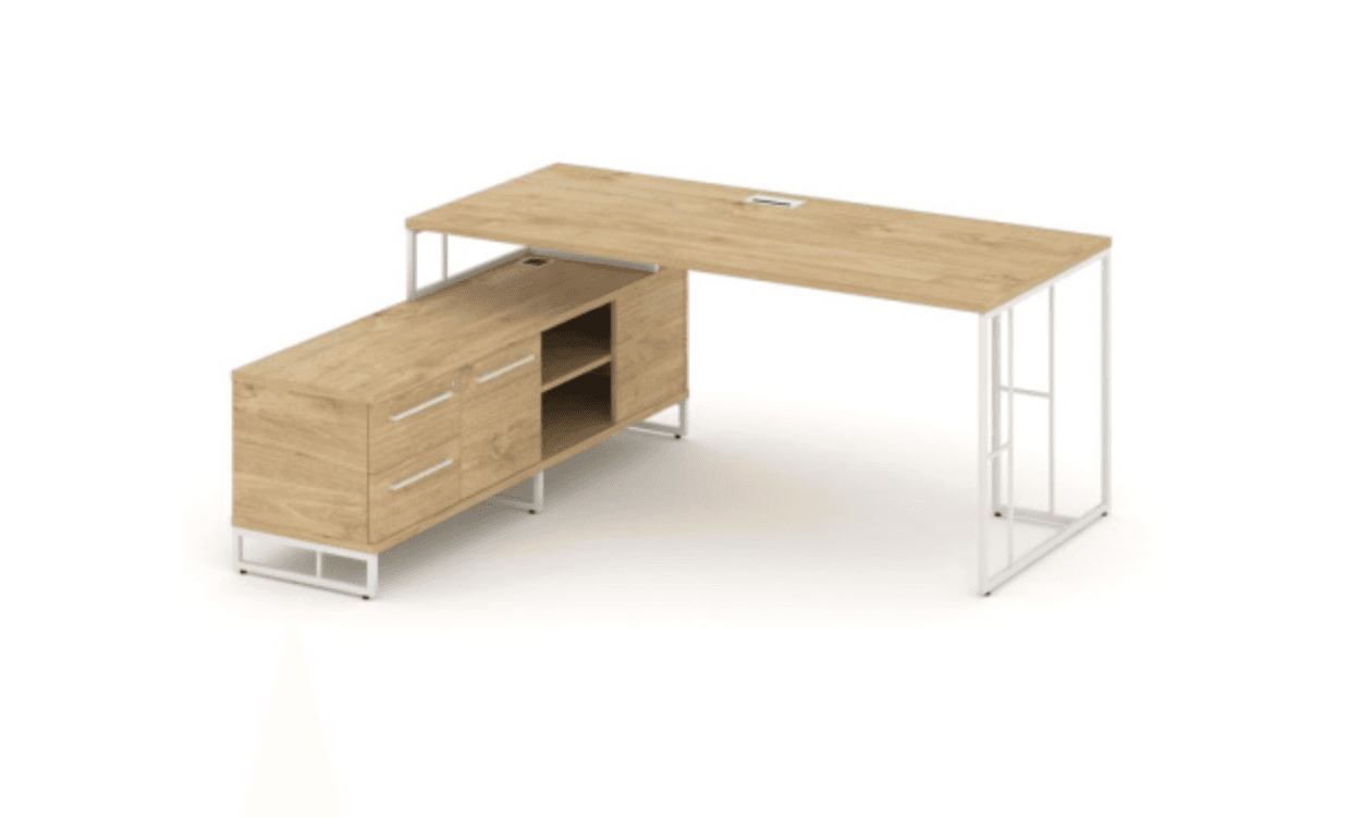 Стол руководителя на опорной тумбе левый/правый 1780 - металл белый, тиквуд светлый