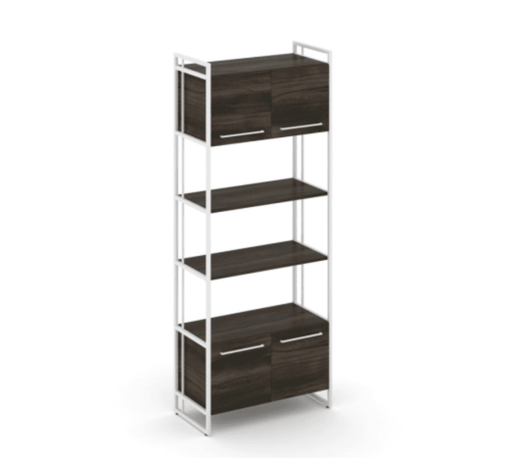 Шкаф высокий широкий 4 низкие двери - металл белый, дуб мали