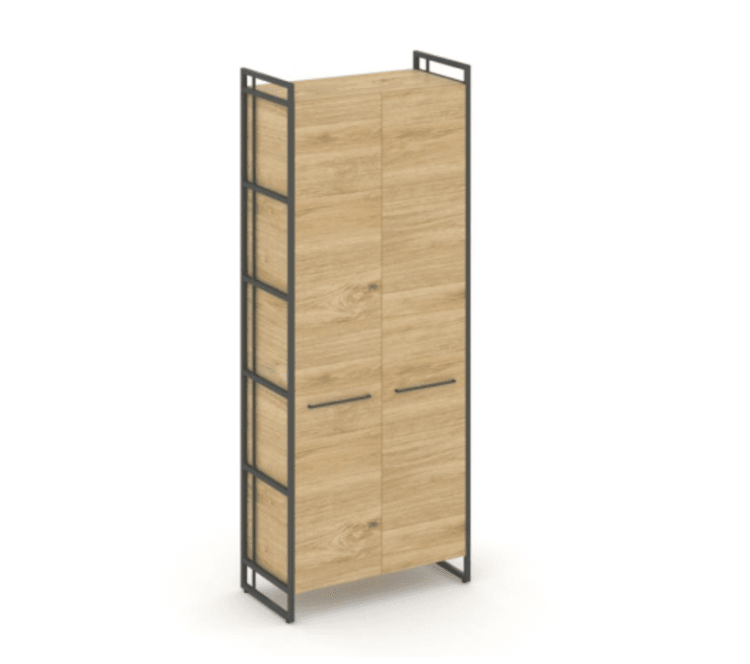 Шкаф высокий широкий закрытый - металл черный/антрацит, тиквуд светлый
