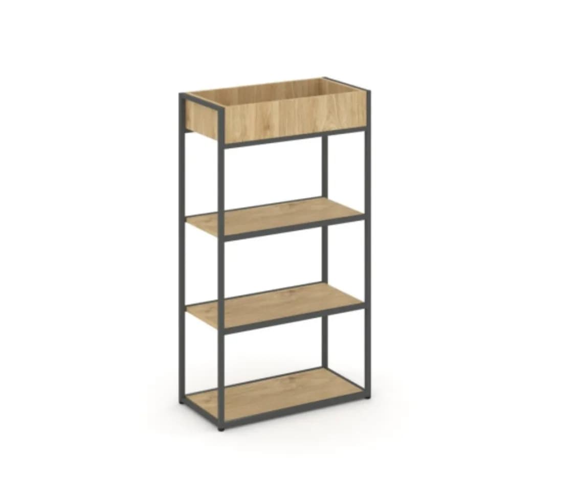 Стеллаж металлический высокий приставной 596 - металл черный/антрацит тиквуд светлый