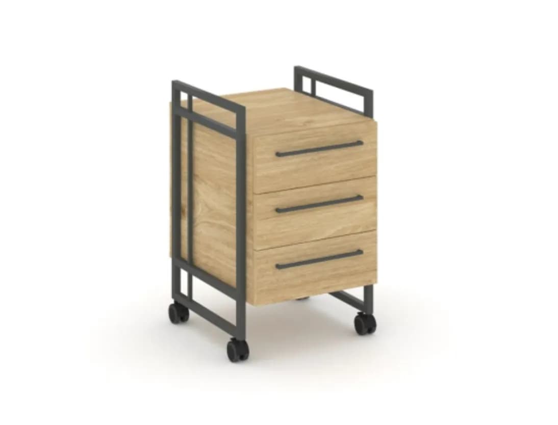 Тумба мобильная, 3 ящика - металл черный/антрацит тиквуд светлый