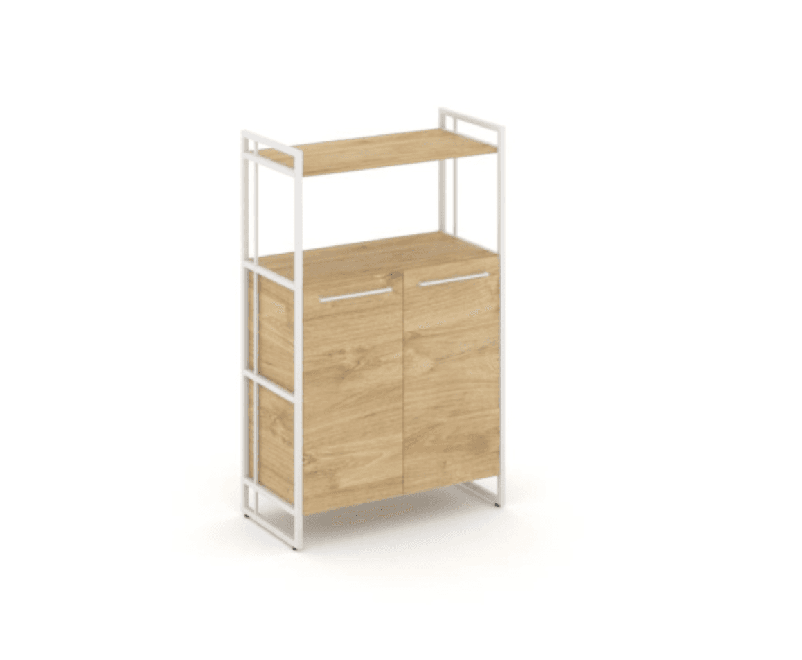 Шкаф средний широкий - металл белый, тиквуд светлый