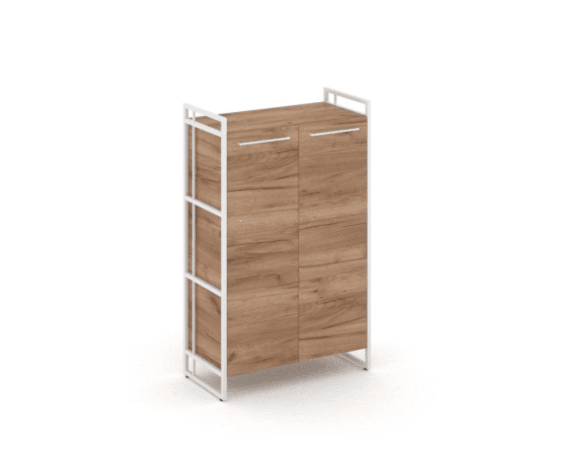 Шкаф средний широкий закрытый - металл белый, дуб табак
