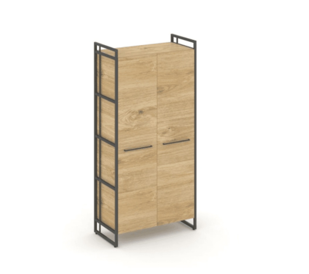 Шкаф высокий широкий закрытый - металл черный/антрацит, тиквуд светлый
