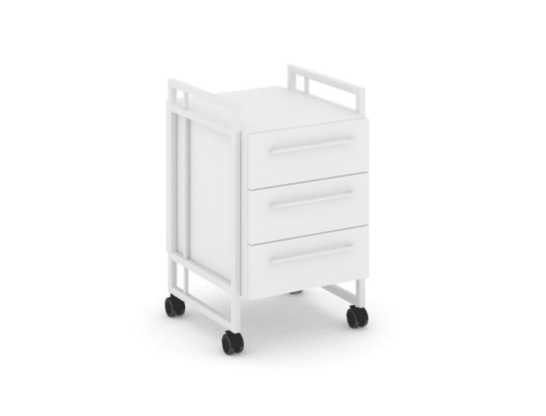 Тумба мобильная, 3 ящика - металл белый, белый бриллиант